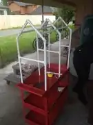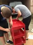The final project was created after careful deliberation and planning. Many trial structures were thought up and the final structure was purchased at the local Harbor Freight. This structure is a 3 tier cart with a pair of caster wheels on one side of the cart. The opposite side has a handle and a pair of stationery wheels.