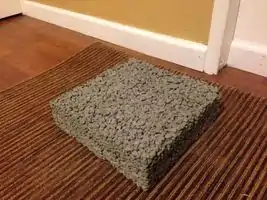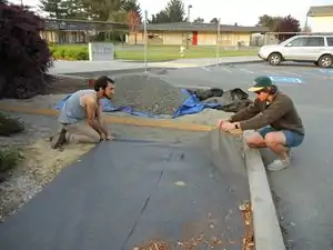 To figure out the correct mixture for making permeable concrete a small block was made to test the ratios of ingredients. Research had showed what the ratio of gravel to cement should be, but not how much water should be added to the mixture. To test this, water was added a little at a time to the gravel and cement mixture until a desirable consistency of concrete was received. After it dried the forms were removed leaving a strong, solid block of concrete that allowed water to permeate through.