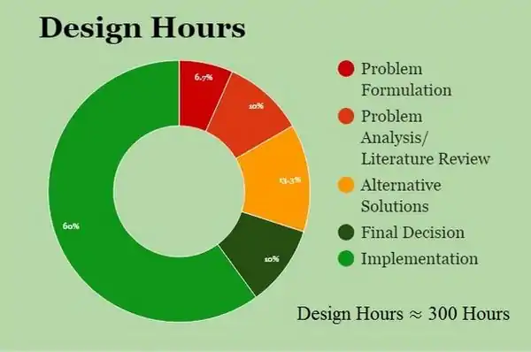 This chart shows what percentage of the 300 hours went to each section of the project.