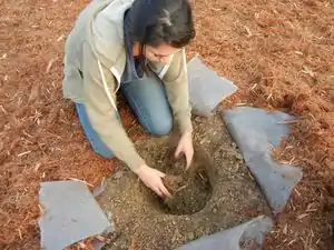 Caption - Dig out holes for plants and prepare soil.