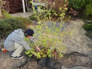 Caption - Cover the ground with shredded redwood mulch.