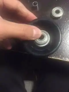 Push new bearing inside the wheel and put wheel back in truck