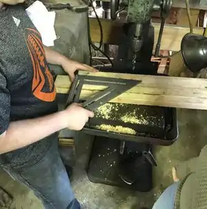 Caption - Screw the two legs together, then drill five holes equal distance apart.