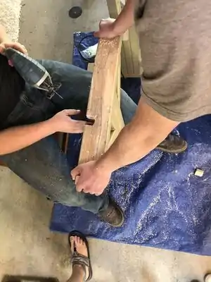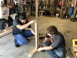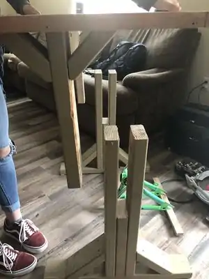 - Cut 2”x4” boards and the plywood top to the proper length.