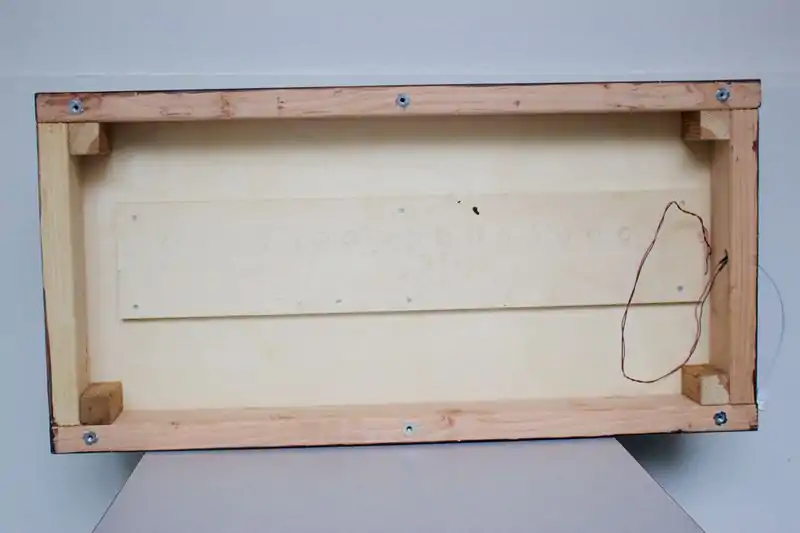 2. Measure out desired dimensions of the machine on the wood to prepare for all necessary cuts and drills. Also, mark which areas of each piece of wood will be bound to another piece to build the frame. Then make all desired cuts on wood and piece the wood together in the manner previously planned out and marked in Step 1 to create the boxed frame for the base of the pendulum. Then cut out and attach the plywood on either side of the frame to create the full base of the pendulum. Also be sure to drill the holes for the LED lights to fit. For a final touch on the base, make sure to drill the holes that will hold the a-frame on the top face of the pendulum.