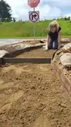 McKenna leveling the ground.
