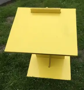 The project went through several design iterations before the group settled on the final product. Initially the group went through numerous brainstorming sessions to isolate traits of a potential design that met as many criteria as possible. Early designs consisted of podiums on wheels, desks on wheels and a podium with nesting sections that could be stacked atop one another to name a few. In the beginning, the whiteboard was designed to be a cabinet with two doors that opened opposite each other, with the insides of the doors also being of a whiteboard material. The whole cabinet was designed to be made of wood with the whiteboard surfaces either being painted on or pressed on like wallpaper. Prototyping occurred in several phases. Initially, prototyping was done with donated materials from SCRAP Humboldt. Those prototypes included a miniature whiteboard design made of stir sticks and a collapsible podium made of Altoid tins. The next prototype was a collapsible stand made out of some scrap wood. The prototype was made by Albert and was inspired by a collapsible foot stool he had in his house. After perusing podium designs on the internet, the group eventually settled on a design that consisted of interlocking pieces that were held together with gravity and pressure. Yerba Mates immediately set to work on recreating the design with pieces of cardboard. Several pieces of cardboard were glued together to give the model rigidity similar to that of wood. After the success of the cardboard podium the decision was made to go ahead and acquire the materials to begin constructing full scale, final design prototypes. After several mistakes the team learned which cuts to make and how to properly make them. A few additional pieces were added to give the podium added rigidity and stability.