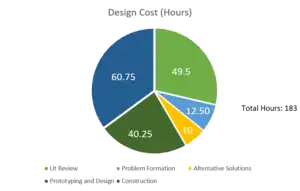 The materials used for the whole design is shown in Table 2. The time (in gender-nonspecific hours) spent on the project is shown in Figure 5.