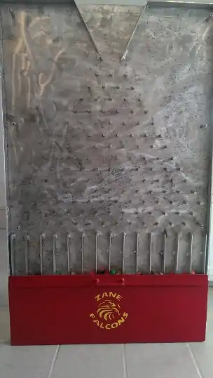 This page and project was created by team GID, who's members include Chris Arcani, Neil Cudney, Marjani Ellison, and Eli Wallach. GID is from HSU's spring engineering 215 class. Our selected client for the design project during the course was Zane Middle School. Our project needed to visually demonstrate probability while being safe, interactive, and aesthetically appealing. The machine that best matched our criteria is a quincunx, which fits well with STEAM. STEAM is a learning motto set for Zane Middle School which stands for: Science, Technology, Engineering, Arts, and Mathematics. The quincunx machine sorts balls by replicating pascals triangle to make out a bell curve, demonstrating probability to Zane Middle School students in multiple ways.