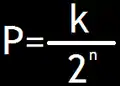 The quincunx machine teaches applications of mathematical probability. The probability of a single ball bouncing to the left on the first peg is 50%. The probability of a ball bouncing to the left many times in a row is significantly less, because there are more paths leading to the middle of the machine than there are paths leading to the sides. As a result, the balls should form a bell-shaped curve at the bottom of the quincunx. The conversion formula, shown below, is used to convert Pascal's Triangle to The Probability Triangle. In the formula, k is a number in Pascal's Triangle, and n represents the row number that contains k. By this definition of probability, probability is a number between zero and one. Each row in the probability triangle should sum to one. The larger probabilities at the center of The Probability Triangle mathematically illustrate the bell-shaped curve that forms at the bottom of the quincunx.