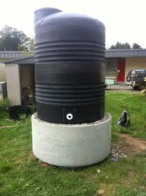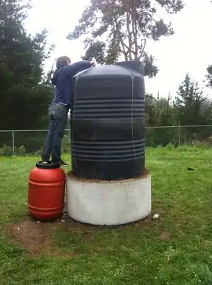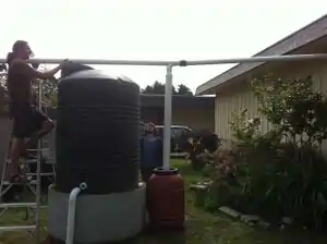 Caption - Install a spigot near the base of the water tank and wait for rain.