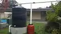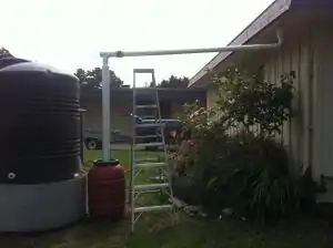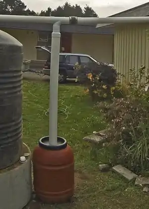 Caption - Using the same diameter pipe as the downspout, connect the first flush to the top of the water tank.