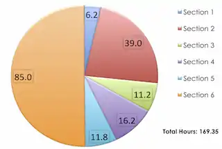 The amount of hours spent by Porta Possibilities for the SmartCart is shown in a pie chart demonstrated in Figure 7. The pie chart is split up into the 6 Sections of the document. Building hours are included in the Section 6. About 60 hours of the 85 hours in Section 6 are building hours. A total of 169 hours was spent on the SmartCart.
