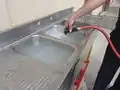 - Attach metal cylinders in corner of sink area to hold the circumference of the 5 gallon bucket