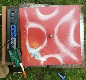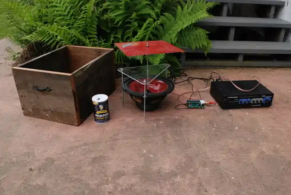 - Put all of the components into the box and plug into some power. Be careful to have the volume turned down before powering on the unit. Ear damage can come from extremely high frequencies and decibel ranges. Pour on some salt and try at different frequencies to see all of the cool shapes you can make!