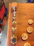 Fig 7: This metal bar contains nuts and wingnuts that can be twisted the entire span of the metal rod. There is alos bottons taken from a video game controller on top of one of the wooden blocks