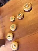 Fig 6: These wooden circles are just about a fingers length apart and spin when fingers are weaved through them.