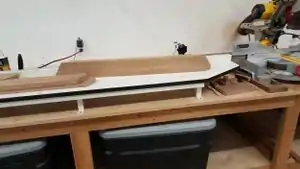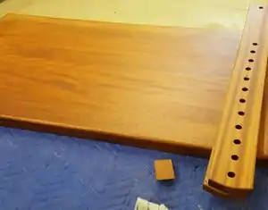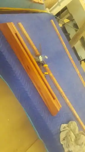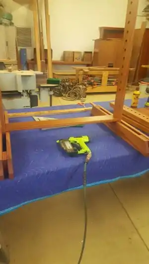 ... - Begin assembly of the base using a pneumatic brad gun. Align 2 pieces of the base and place small blocks in between them on opposite ends. Nail the pieces together then use wood screws for extra support.