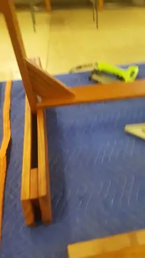 ... - Place a single piece of the legs into the base making sure it is directly aligned in the center. Using the nail gun attach the piece and then proceed to run wood screws through it so that it does not move under load. Repeat steps 8-9 to create the second part of the base