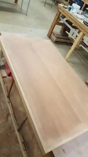 ... - Cut a section for the top of the desk 42” x 30” then proceed to sand, route, and wax as needed.