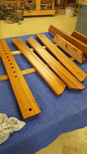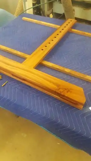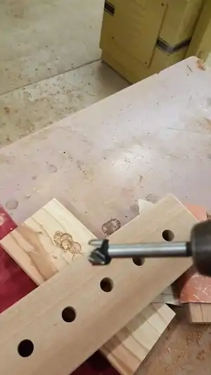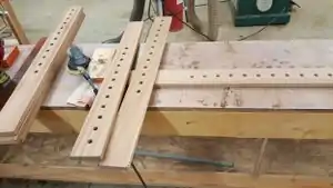 ... - Using a ⅝” forstner bit, drill 6 holes 2 inches apart from each other on every piece of the legs starting from the bottom. Drill a single hole into every member on the opposite side of the previously drilled holes.