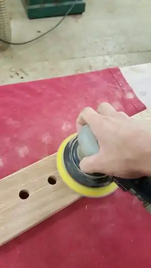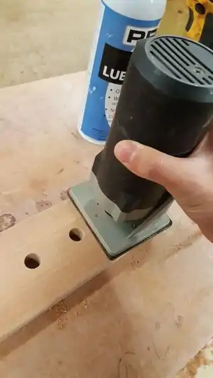 ... - Sand all pieces of wood with an orbital sander or preferred sanding method to achieve the same smoothness, color, and to get rid of any burn marks that may have occurred from routing on all pieces