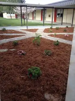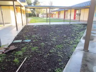 Once more urbanite was added, the pathways held together much better and they withstood a week of foot traffic without any damage. The plants seemed to be thriving and the students, or community members, had not kicked up any of the redwood mulch. Faculty stated that they use the pathways often and that the students seem to respect the area and also utilize the area aswell.