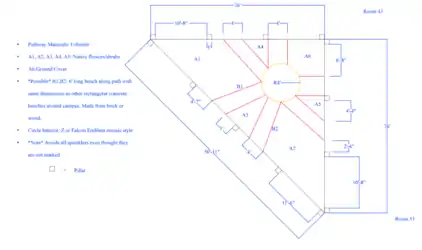 A solution of an aseptically pleasing, durable and maintainable site is implemented at Zane Middle School. Six walking pathways are laid out to avoid utility boxes, sprinkler systems, and pillars that are located in the area. The pathways emit out radially from the center to the edges of the triangle. The pathways are made out of urbanite, and are packed together with recycled concrete mix. A circular area, made of urbanite, is centered in the middle of the triangle to provide students, and teachers, with a social gathering area. Urbanite is implemented to reduce the amount of CO2 that enters the atmosphere, because the production of new concrete creates CO2 emissions. It consists of recycled concrete and slit. The open areas contain weed mats, to prevent a rise in maintenance costs, evergreen plants native to the local area, to maintain an aesthetically pleasing landscape, and redwood mulch, to match existing landscapes.