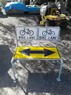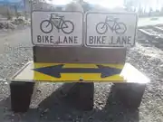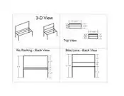 Figure 6 shows our first prototype. This prototype helped us to figure out the layout of the signs and that the Bike Lane signs needed to be raised to create a more comfortable back support. Figure 7 shows a small scale of the Bike Lane Bench. This prototype helped us to roughly figure out how the frame of the bench would fit with the signs. Figure 8 is an AutoCAD drawing of one of the benches. This prototype contained the actual dimensions of the pipes we would be using. Figure 9 shows our last prototype before building. This prototype was originally supposed to be the beginning of the final product but in building we learned that when making a closed loop with piping, a special connector or backwards threads are needed. This lead us to our decision to weld the joints.