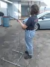 Figure 9: Lauren Yarbrough prototyping how the pipes and joints fit together for the bench frame.