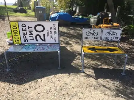 The purpose of this project is to create up-cycled benches used for sitting purposes, campus beautification, and for educating both students and faculty about the recyclable use of material waste in the community. While many options were considered for building the benches, street signs and a metal frame were decided upon for aesthetic reasons and that they would be up-cycled. The resulting benches are made of galvanized steel plumbing pipes and up-cycled street signs. The benches are comfortable, functional, and educational.