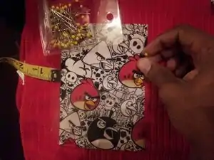 - Measure the pocket placement as well as plastic labels and pin to fabric.