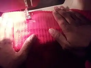 - Sew a hem on the top and bottom of the fabric for the pockets.