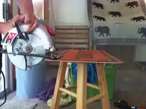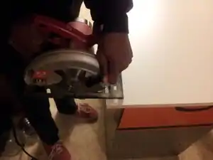 - Cut wood material into desired size. Make sure to include the width of the wood when measuring.