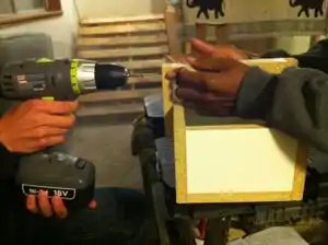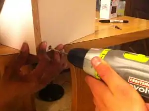 - Slowly drill screws in pilot holes. Be sure to screw in straight otherwise wood may crack.