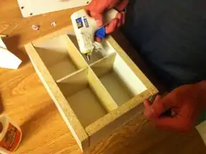 - Once dividers have dried, carefully glue into the caddy body. Be sure to clean up any excess glue inside caddy body.