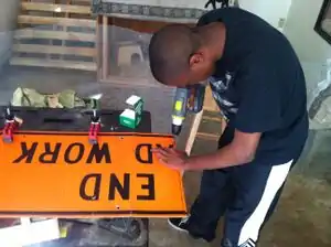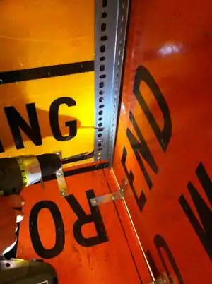 - Check to make sure sides of signs are flush against each other and brackets are straight.