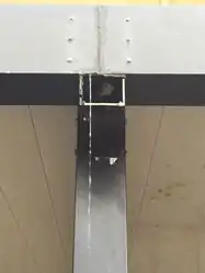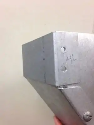 Caption - Cut a small rectangular piece and bend at a 90 degree angle to use as a bracket to hold the newly sealed pieces together. Apply sealant along any cracks between any of the metal pieces, but leave holes in the brackets open.