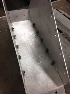 Caption - Secure the triangular pieces to the rectangular pieces using nuts and bolts. Ensure that sealant covers the entire length and fills all holes.