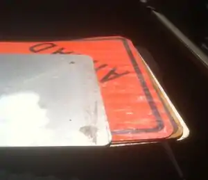 Caption - Clean off signs using turpentine and a scouring pad until all paint is removed, then use a sander to smooth surfaces.