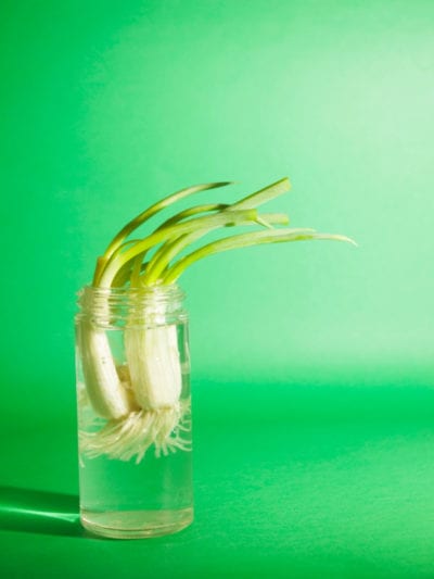 It is easy to regrow store bought scallions. Once you have used up much of the green part of the onion, keep the white bulbous base with a bit of green still attached. This is the part that can be rooted and will produce new shoots. Place the remaining onion in a glass and fill with just enough water to cover the white part of the onion. Place the glass in a sunny window and that’s it. There couldn’t be simpler instructions on how to plant grocery store scallions. Change the water every few days to prevent rot and bacteria buildup. Then you just have to wait patiently.