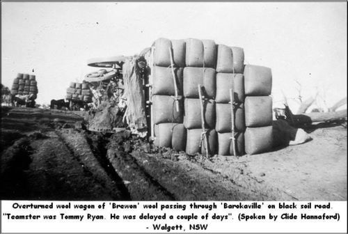 - “Wool wagons bogged on the Mossgiel-Ivanhoe road“, NSW