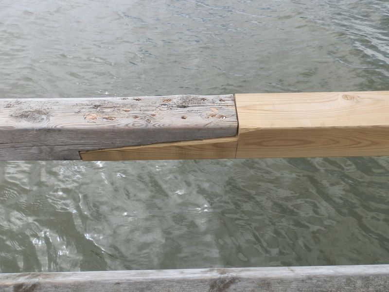 They could have replaced the full beam. They didn’t. Sound wood repair on a pontoon in Helsinki, Finland.