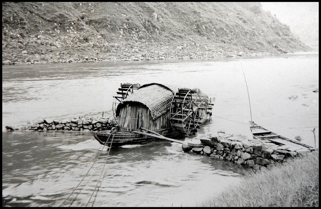 A Floating Grain Mill on the Hwei River in China (19th/20th century). Source. Previously: “Boat mills: water powered, floating factories“.