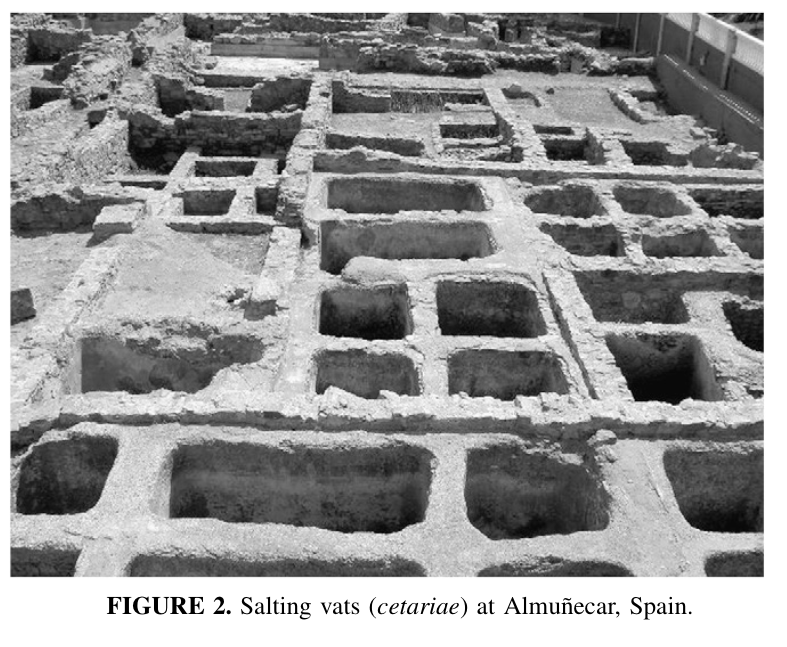 These processing sites functioned at a scale similar to modern factories—supplying the multitudes of Roman soldiers, sailors, and slaves with flavor enhancer. These factories were placed strategically along lines of tuna migration, so that fishers could bring their catch to shore, which could then immediately be processed and sent throughout the empire. During off-seasons, these same sites would process smaller fish such as sardines and anchovies.