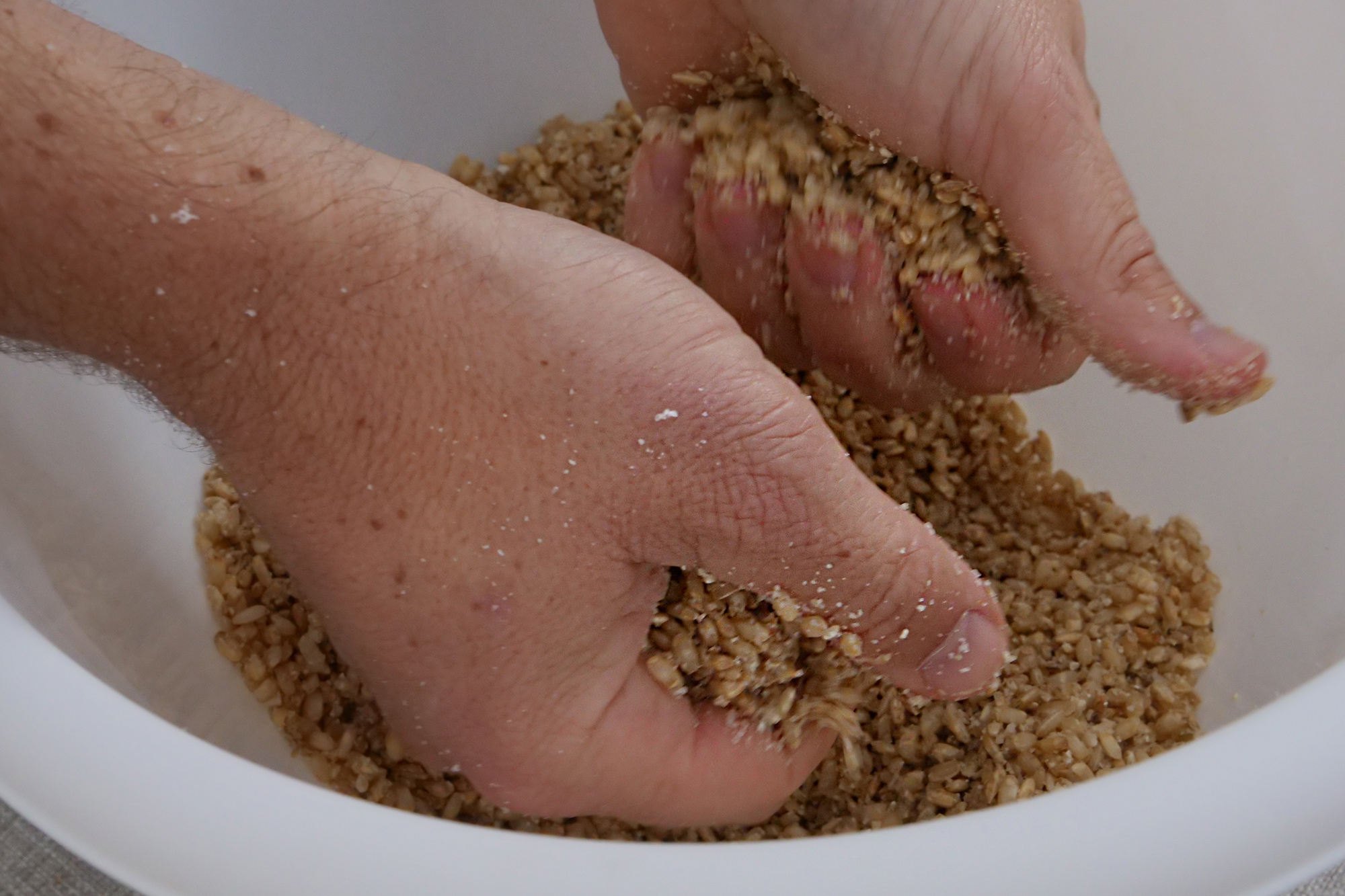 Rosemary Liss, an artist who works with fermentation in her practice, learned about nuka at Hex Ferments, a group of food alchemists in Maryland, USA. ‘We had a pot and it was like a pet we had to tend to daily. I loved this ritual—the gestures and movements—it felt like a dance. Each day we lifted the heavy crock off the shelf, removed its colorful fabric covering and then unearthed the pickles before aerating the bran and adding fresh veg to the bed for a short lactic sleep.’