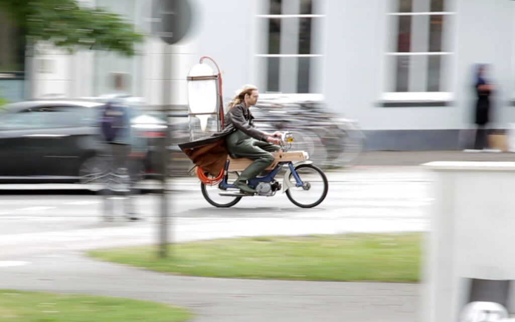 Shallow ponds and ditches are producers of greenhouse gases, especially methane, which is released by the breakdown or decay of organic material. Gijs Schalkx harvests this methane from ponds — by hand — and uses it to power his moped. Eight hours of hoeing in a ditch supplies him with enough fuel to ride his vehicle for 20 km. He calls it “a quest on keeping the combustion engine alive in a fossil free future”.