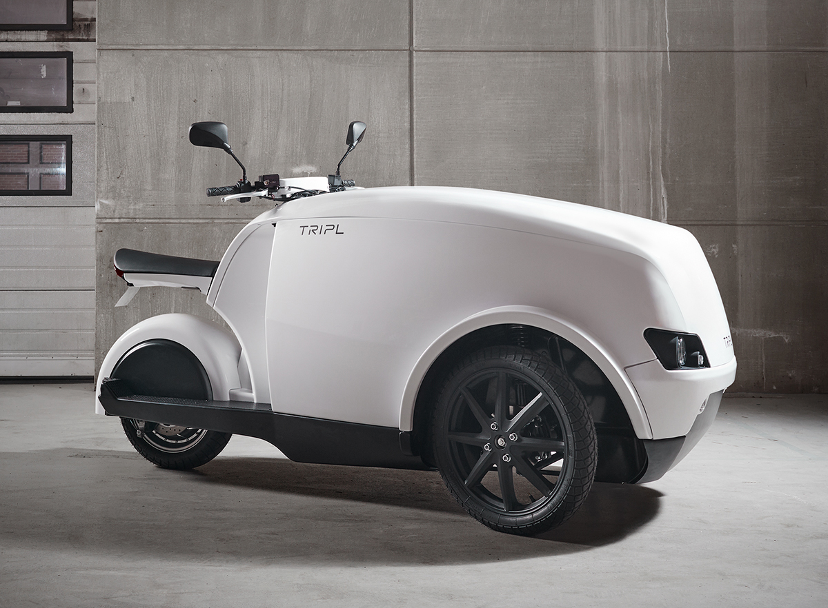 Denmark’s Tripl electric motorbike has more cargo space than a Mercedes E-Class estate. The vehicle is aimed at goods delivery in large cities. Heated and refrigerated cargo boxes are available. Some specifications: