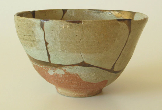 Kintsugi is a technique of repairing broken porcelain, earthenware pottery and glass with resins and lacquers that come from trees. It dates from the 15th century. The kintsugi artist carefully repairs the broken vessel with a sticky resin that hardens as it dries. The resin can then be sanded and buffed until the crack is almost imperceptible to the touch. After that, the artist takes a lacquer that has been combined with real gold and covers the crack.