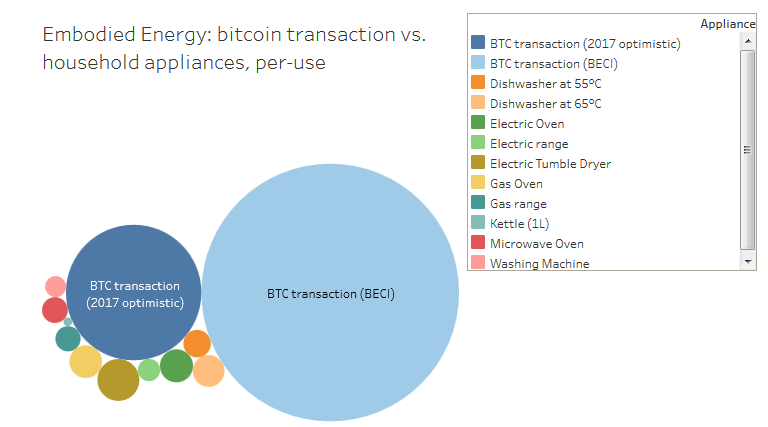 Updated calculations with optimistic assumptions show that in a best-case hypothetical, each bitcoin transaction is backed by approximately 90 percent of an American household’s daily average electricity consumption. So even though that’s still about 3,994 times as energy-intensive as a credit card transaction, things could be getting better since 2015.